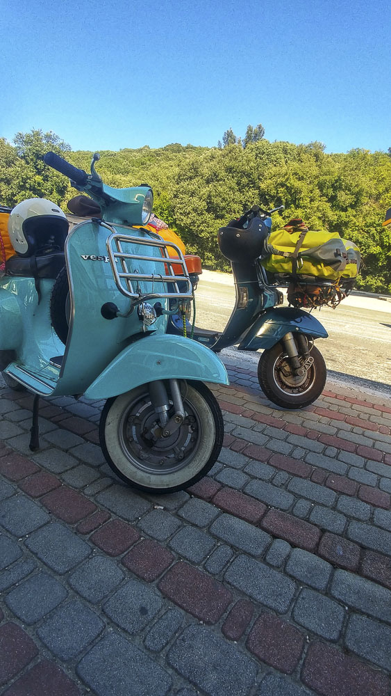 Am Fährhaus war schnell klar, dass wir warten mussten. Beim Essen der Reste vom Vortag lernten wir ein Schweizer Pärchen kennen, die eine ähnliche Reiseroute hatten, aber auf uralten und schwer bepackten Vespas unterwegs waren. Eher beiläufig beim Vergleich unserer Routen erzählten sie von ihrer spontanen Idee über die Inseln vor der „Bora“ zu flüchten. Wir hatten natürlich nicht den Wetterbericht studiert und ließen uns aufklären. Als Bora, bzw. Burja werden kalte Fallwinde bezeichnet, die aufgrund der hohen Durchschnittsgeschwindigkeiten zu den stärksten der Welt gehören und bis zu 250km/h erreichen können. Nach einem kurzen Blick in den Wetterbericht wurde uns schnell klar, dass wir trotz der Strapazen auf Krk die richtige Entscheidung getroffen hatten und waren heilfroh, alldem über die kroatischen Inseln entkommen zu können. Manchmal muss man einfach Glück haben…