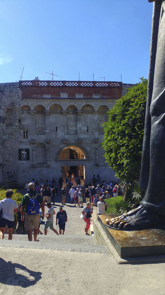 Die lang ersehnte Abfahrt nach Split war dann leider doch nicht so spektakulär wie erwartet. Als wir an der Promenade ankamen, waren es bereits wieder schweißtreibende 26 Grad – wir hatten immer noch die gleichen Klamotten an, mit denen wir morgens bei knapp 4 Grad in den Bergen losgefahren waren. Nach einer kleinen Sightseeing Tour durch die historische Altstadt ging es direkt weiter nach Stobrec; zum dortigen Campingplatz hatten wir unsere Ausweise schicken lassen. Obwohl es erst halb vier am Nachtmittag war, beschlossen wir die Gelegenheit zu nutzen, um zu Waschen und checkten daher ein.