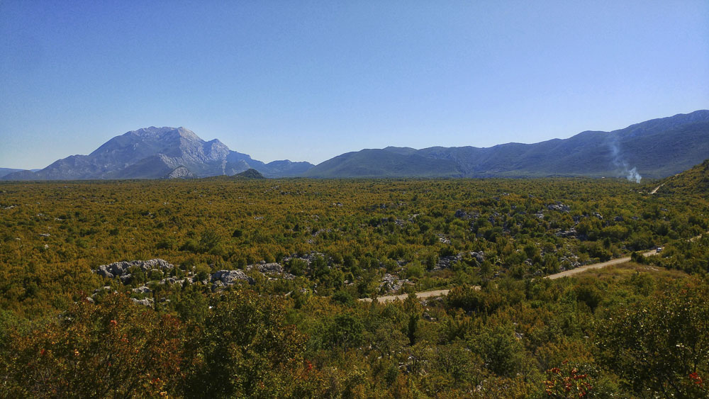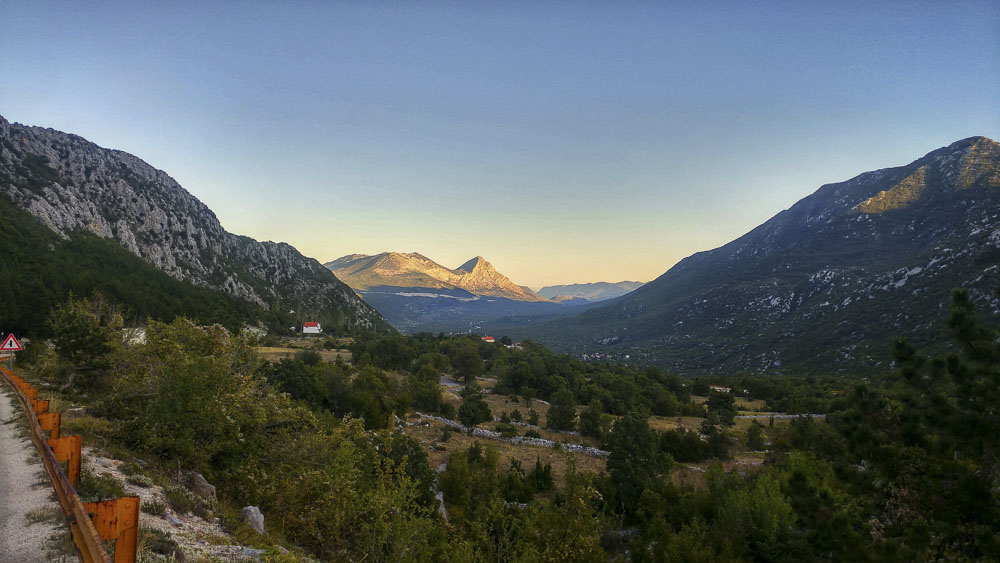 Je weiter südlich wir kamen, desto weniger Militär war sichtbar. Kurz hinter dem Dorf Gradac fanden wir eine perfekt versteckte Stelle zum Zelten. In den letzten Tagen war mir aufgefallen, dass sich das Straßenbild der Orte in den Bergen fundamental von denen an der Küste unterscheidet. Es gibt kaum größere Städte, die Müllentsorgung ist quasi nicht existent, fast alle Einwohner betreiben kleine Landwirtschaften und halten Nutztiere. Der Kontrast ist schon sehr deutlich, wenn man bedenkt, dass das touristisch erschlossene Küstengebiet keine 80 km von den dörflichen Regionen quasi ohne Infrastruktur entfernt liegt. Einen Vorteil hatte unsere Abgeschiedenheit allerdings: Einen grandiosen Sternenhimmel, den ich so in Europa noch nicht gesehen hatte.