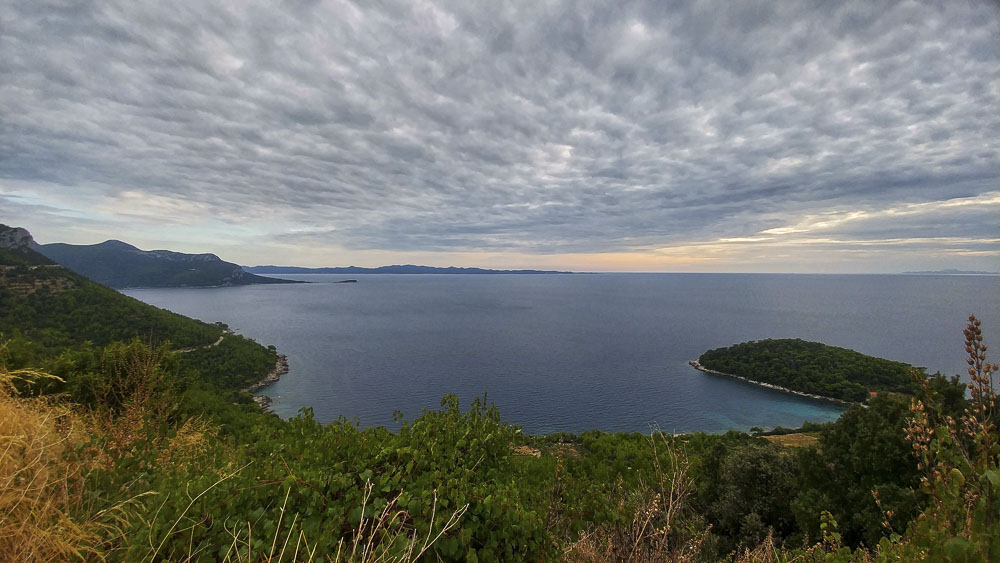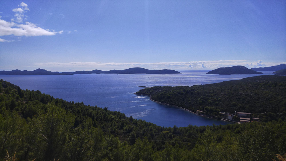 Die Autofähre nach Lopar auf Rab war wirklich groß, Kleinfahrzeuge wie wir duften aber zuerst an Board. Rab ist wunderschön, noch bergiger, es gibt aber auch etwas mehr Vegetation. Kurz nachdem wir die Stadt hinter uns gelassen hatten, war bei uns der Akku leer. Ich war einfach richtig erschöpft, so als hätte man mir den Stecker gezogen. Es half aber nichts: Direkt an der Straße konnten wir nicht bleiben, also krochen wir weiter den Berg hoch. Da Wildcampen in Kroatien (zumindest im touristischen Teil) verfolgt wird und mit hohen Strafen belegt ist, steuerten wir einen, leider sehr vollen Campingplatz an. Bei der Anmeldung kam dann der Schock: Weder David, noch ich fanden unsere Ausweise! Und so ganz langsam dämmerte es uns… Die hatten wir beim letzten Campingplatz abgegeben und bei der Abreise nicht wiederbekommen. Was für ein Anfängerfehler! Nach einem hektischen Telefonat war klar: Genau so war es passiert. Wir bekamen einen Scan unserer Personalausweise per Mail geschickt, konnten uns anmelden und bauten das Zelt auf. Nach längerer Diskussion und Abwägung aller Optionen blieb uns nur ein übrig: Wir beschlossen einen Campingplatz am Südzipfel von Kroatien kontaktieren, dort unsere Ausweise hinschicken zu lassen und ab sofort wieder so gut es ging wild zu zelten.