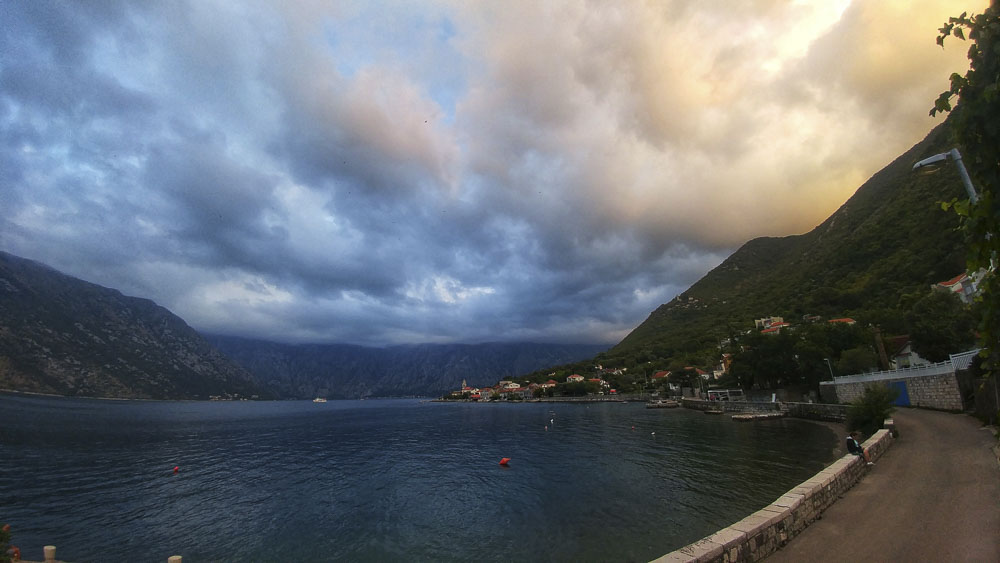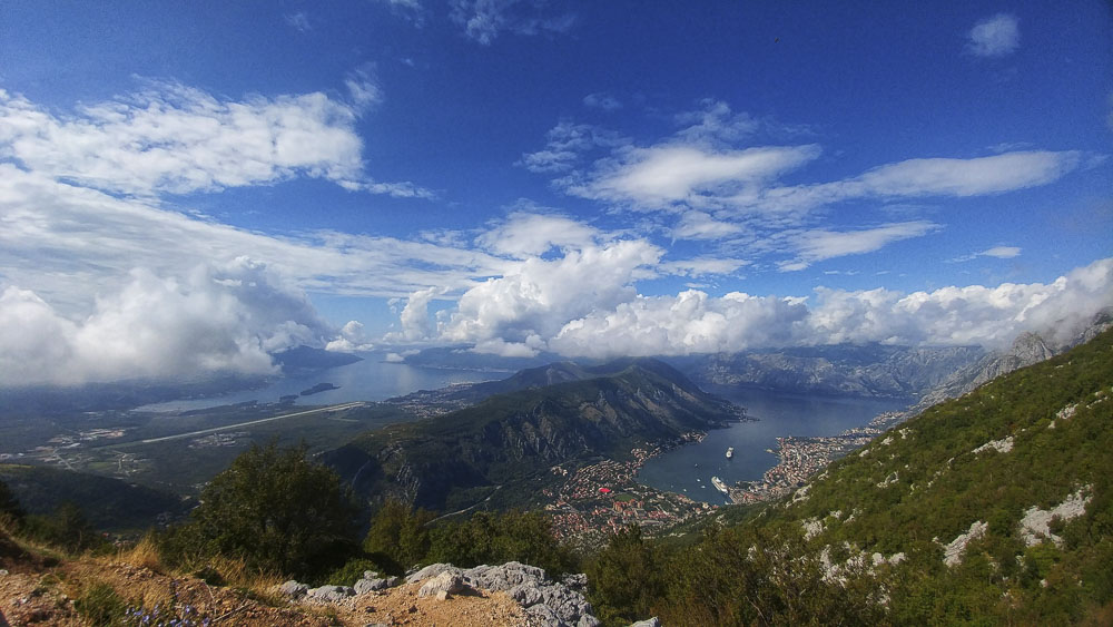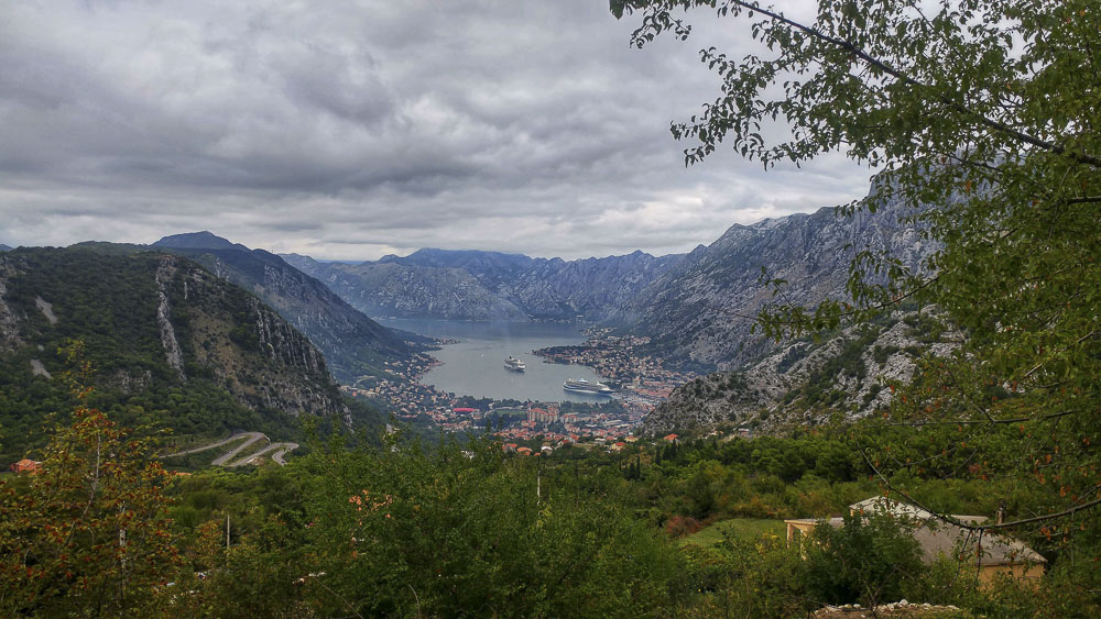 Kotor – UNESCO Weltkulturerbe mit unfassbar schönem historischen Stadtkern. Noch in der Stadt geht es bergauf, von unten ist es unvorstellbar, dass durch diese Bergflanke eine Straße führt. Ich musste mehrfach angestrengt vom GPS auf den Berg und wieder zurück schauen, um eine ungefähre Vorstellung zu bekommen, was uns erwarten würde. Von unten ist die alte Pass-Straße schwer bis gar nicht zu erkennen. Die Straße wurde im 19. Jahrhundert angelegt, ist weitestgehend einspurig und zum Glück nur moderat befahren. In den unzähligen, sehr engen Serpentinen ist jedoch fast immer genug Platz um dem Gegenverkehr ausweichen zu können. Bei moderater Steigung von durchschnittlich nur 5% geht es vorerst 900 Höhenmeter bergauf zu einem kleinen Café mit Aussichtspunkt.
