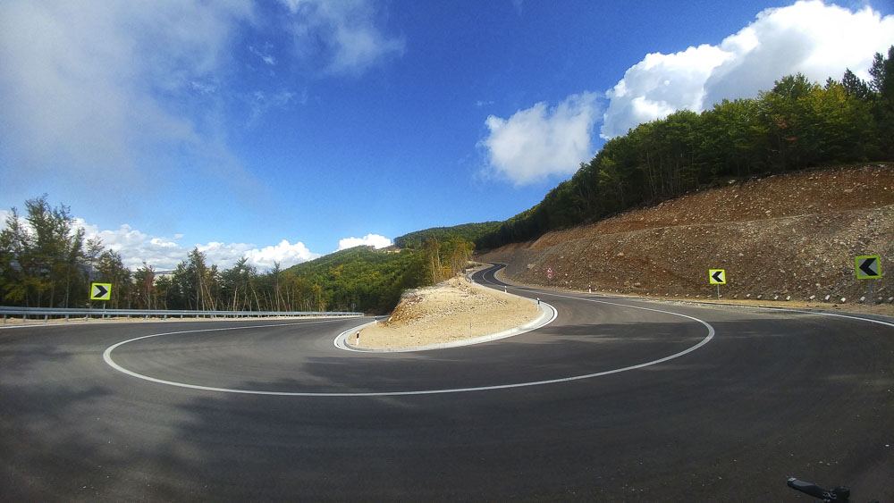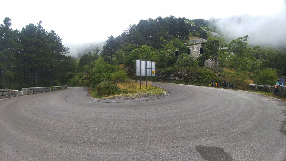 Nach einer kurzen Kaffeepause fuhren wir weiter über die nagelneue und frisch asphaltierte Straße Richtung Lovćen Nationalpark. Die neue Straße ist mit ca. 16% Steigung deutlich steiler, dafür sehr großzügig breit bemessen, nach den vorangegangenen Höhenmetern aber auch doppelt anstrengend. Selten konnte ich nagelneuen Asphalt so wenig genießen, wie dort. Für alle, die den Lovćen Nationalpark weiter erkunden wollen, gibt es die Möglichkeit, nach Kauf eines Tickets (welches gleichzeitig als Postkarte genutzt werden kann), einen kleinen Zeltplatz am Eingang zum Nationalpark zu nutzen.