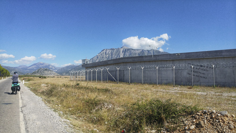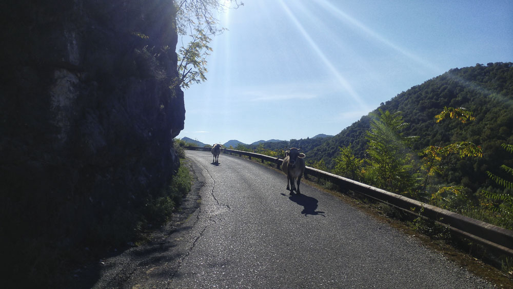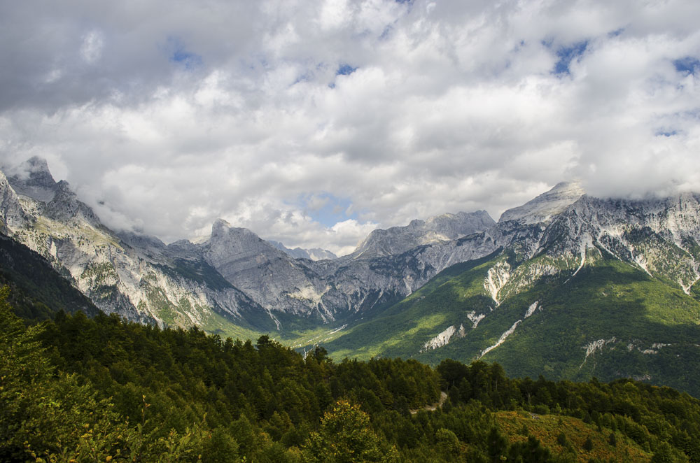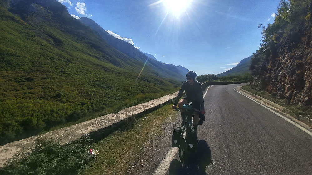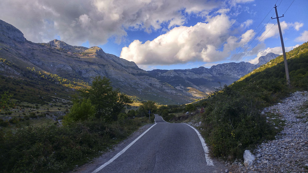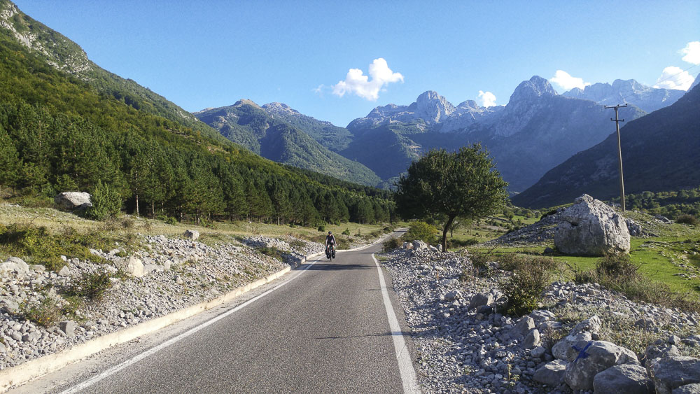 Kurz hinter der Grenze wartete eine positive Überraschung auf uns: guter Straßenbelag! Mit wirklich breiten Seitenstreifen, die auch in Deutschland als wirklich luxuriöse Radwege durchgehen würden. Die Landschaft im Nordwesten Albaniens ist grundsätzlich eher flach, die Berge scheinen wie aus dem Nichts, etwas unwirklich in die Landschaft gestellt, brauchen sich aber in ihrer Schönheit und schroffen Art in keinster Weise vor den Alpen verstecken. Die Bezeichnung als albanische Alpen ist definitiv gerechtfertigt.