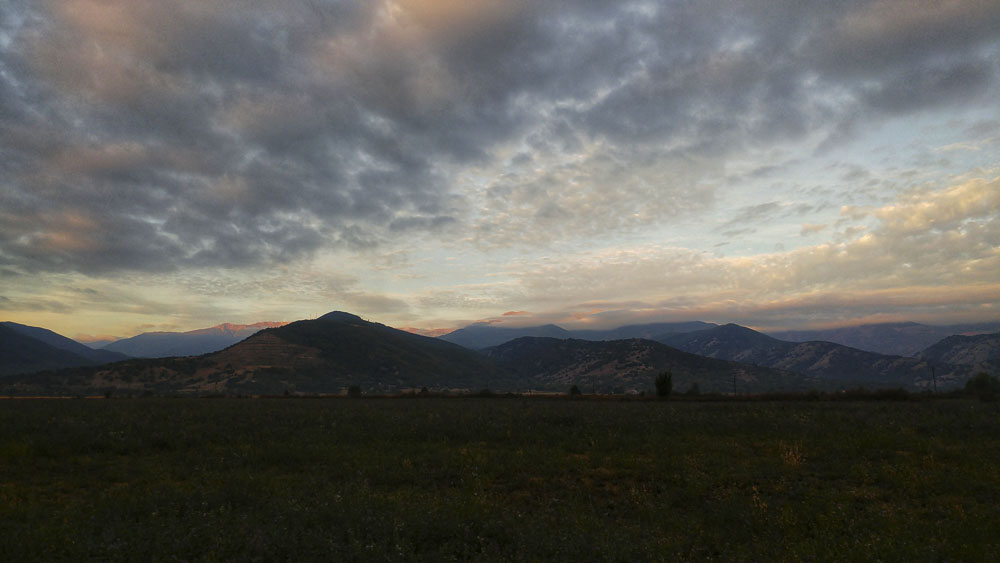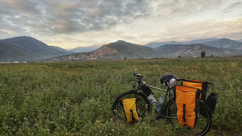 Dort angekommen nutzten wir die Wartezeit, um einen kleinen Abstecher an den recht malerischen See und in die historische (und von Touristen bevölkerte) Altstadt zu machen. Nach ziemlich ähnlichen Verhandlungen, diesmal unterstützt vom sehr netten Aufseher des Busbahnhofs, fuhren wir mit dem nächsten Bus weiter bis Bitola, um von dort weiter mit dem Rad über die Grenze nach Griechenland zu fahren. Nach wenigen Kilometern fanden wir kurz vor Phlorina zwischen zwei Maisfeldern einen geschützten Platz fürs Zelt. Das Highlight des Tages: endlich wieder in der EU & endlich wieder EU-Datenroaming!